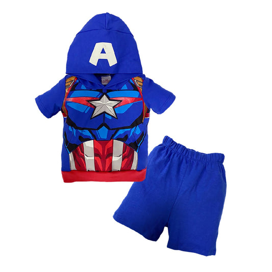 Conjunto Playera Con Gorro Y Short Capitan América Marvel