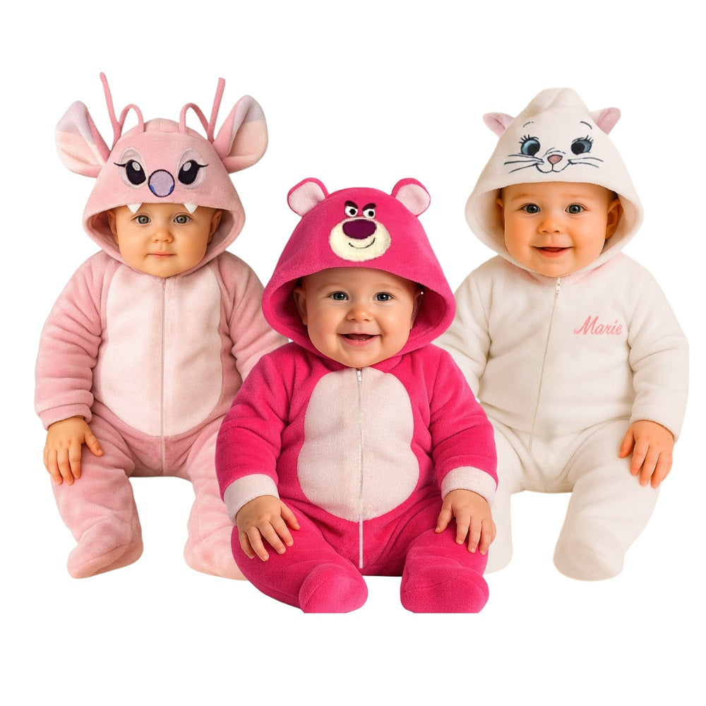 Kit 3 Mamelucos Disney para Bebé con Gorro Bordado Lotso, Marie, Angel
